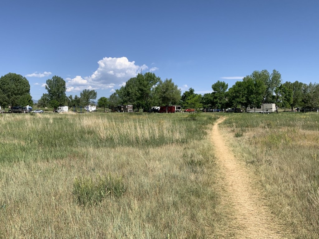 We were at Boyd Lake for only one night, but it was clear that this park is well loved by many who enjoy boating and the trails that weave their way through Ft. Collins and to this park. We arrived in the afternoon and were greeted by a line of trucks towing boats and campers. We wanted to get inside this park as soon as possible to set up, but we needed a map. We waited in line and the friendly attendant was happy to provide the information we needed. There are more than 100 sites at this campground which are distributed across a few camping loops. We were in site 126, an end site near the trail along the lake.