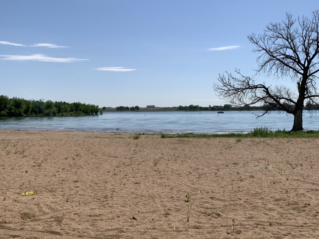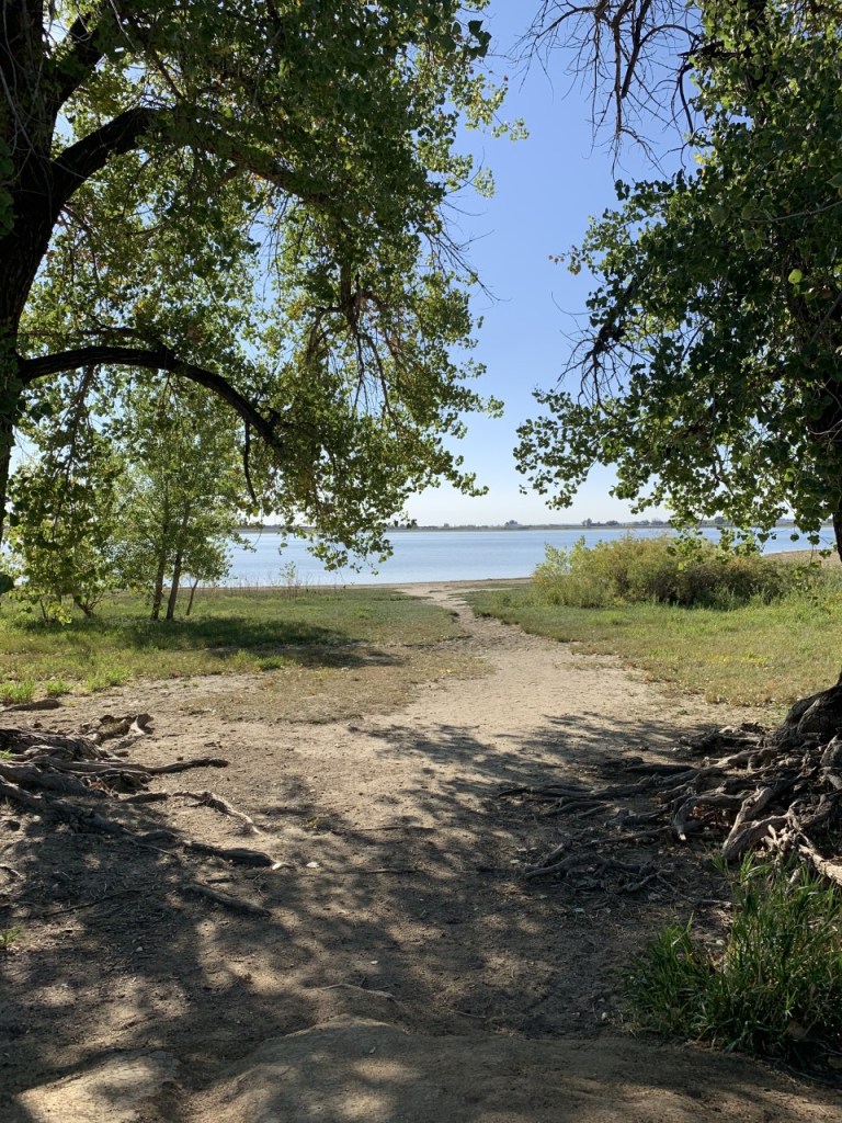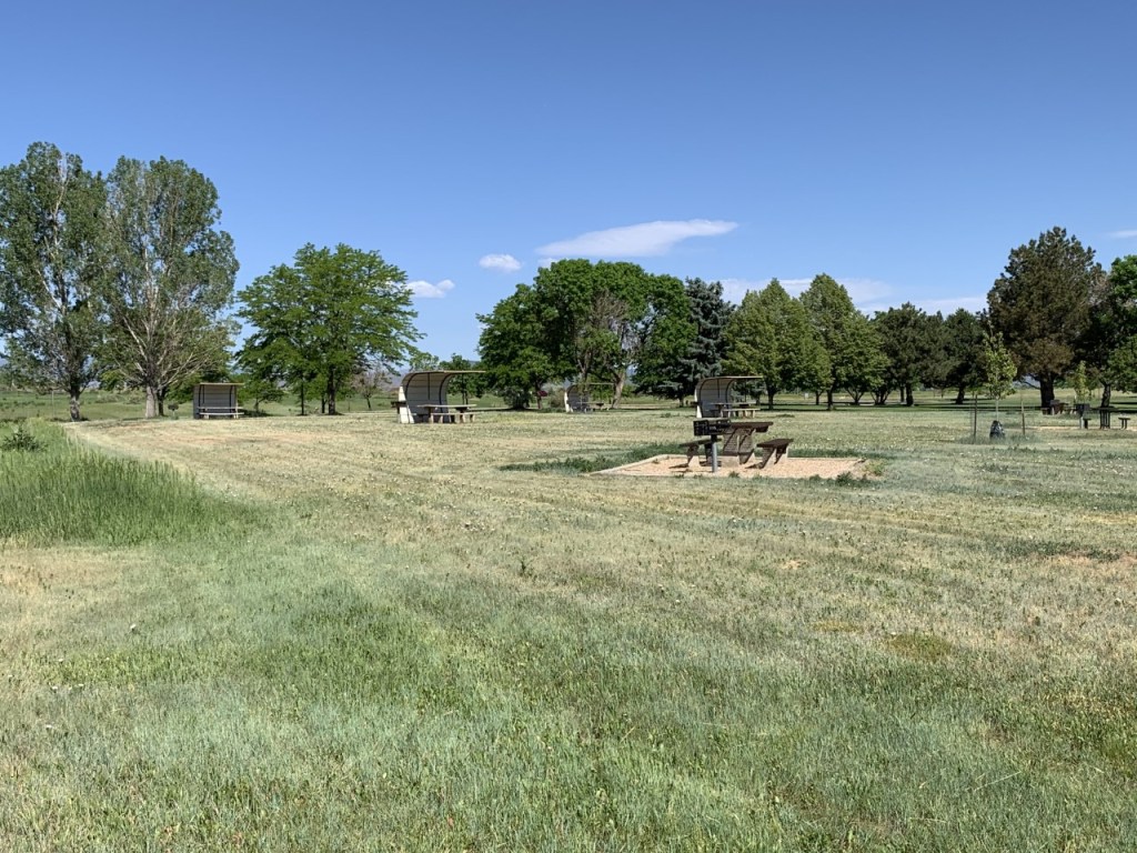 It was simple to set up camp on this very level site. The sites here are electric only, but a dump station and water is easily accessible. Ft. Collins has an amazing bike path and this particular loop was right next to the bike trail. The lake is surrounded by trees, providing areas to fish in the shade. Large picnic areas are also available near the swim beach.