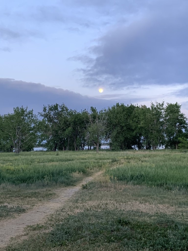 The sites are closer to each other than I usually prefer, but the camper next to us did not arrive. It felt like we had a large area to ourselves. Some loops have several, large trees providing shade while other campsites have relatively small trees. This particular campsite had only a couple small trees, but evening shade was provided in our site from large cottonwood trees in further west sites.