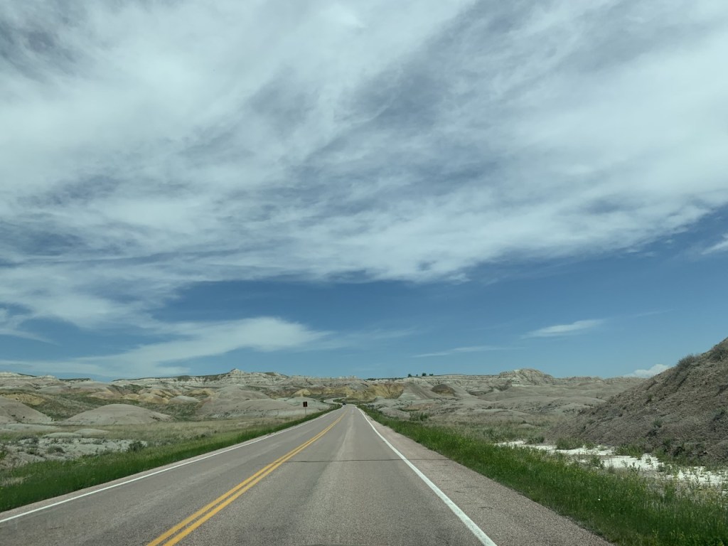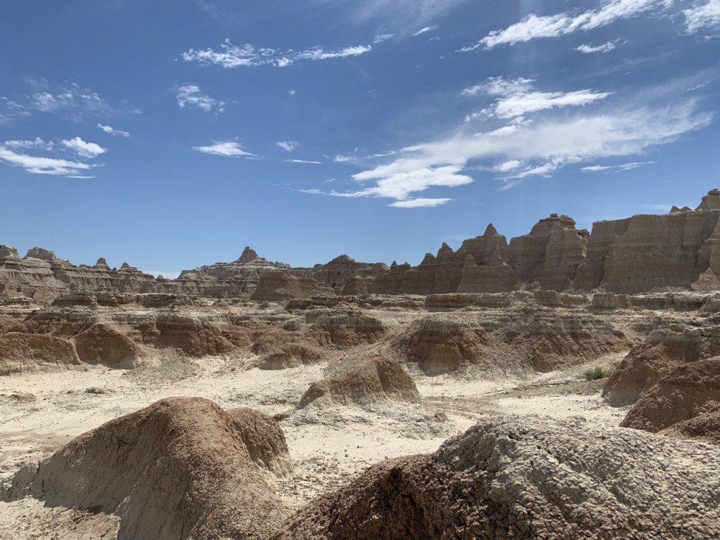 After enjoying our ice cream and being some of the few tourists here, we headed toward the west entrance of Badlands National Park, just a few miles down the highway. After entering the park, we stopped at several overlooks to enjoy the views of these rock formations.