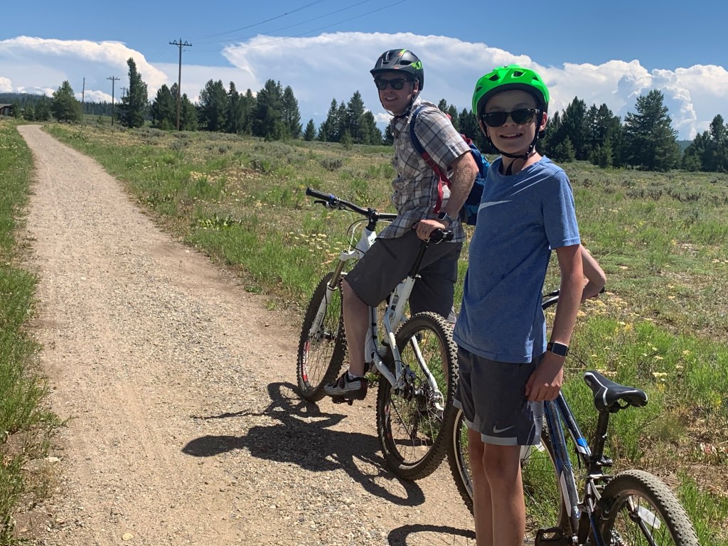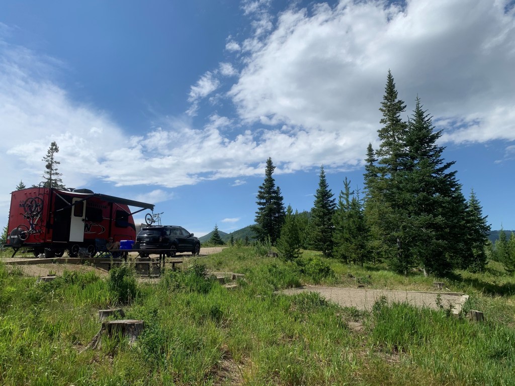 We spent the following day at the lake taking turns in the kayak, hiking from the lake into the Routt National Forest (the trail is very well marked), and enjoying our campsite with views of the lake and mountains. Several day-use visitors arrived and were having fun on the lake and during the day, kayak and SUP are available for rent from a stand near the main boat launch. The hike we took was complete with all hues of vibrant wildflowers and towering aspen trees that were in a race with the pine to reach the sun. The entire experience made it difficult for us to decide to go back to Steamboat Lake to try fishing and bike riding the following day. But we wanted to re-fill the water in the camper and we had to use that bait we bought at the small, well-stocked store on our way to the campground.