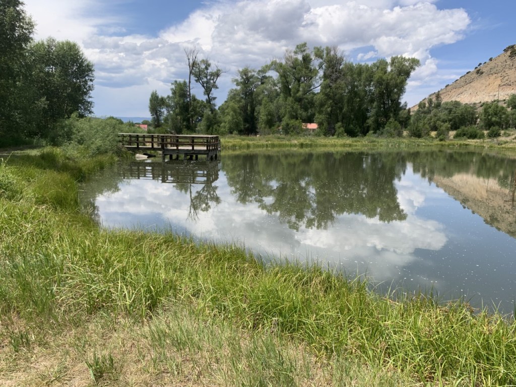 We traveled here from Pearl Lake State Park, driving from pine forests through high dessert, and back again into yet more pine. This is a short drive and we decided to stop to eat lunch at one of several state turn-outs that follow the river and provide opportunities to park and fish. Mosquitos, which are generally missing from Colorado’s landscape, were thick and thirsty at one of several pull-offs along the highway. We quickly jumped in the camper and made sure not to allow any uninvited quests inside. These shaded areas make nice stops along the river on this gentle drive and are usually used by people fishing on the river. This particular pull-out had a small lake for kids to fish (but was also popular with mosquitos on this particular day).