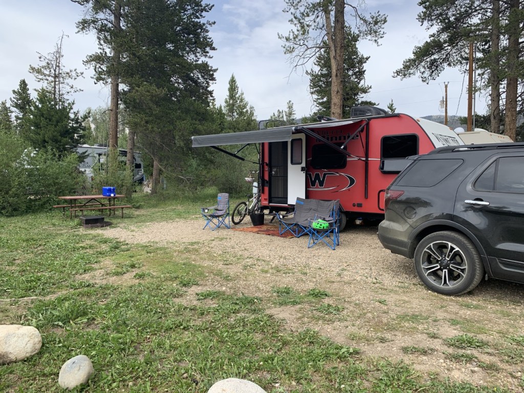 These sites are surrounded by tall pines and, though they are close together, they feel much more like the pine tree camping experience I prefer. Luckily, I got one of these spots. The campers in the “culdesac” next to us (Columbine Ct.) were there for at least one week, camping as a retired group, and had large campers or fifth wheels set up with full outdoor kitchens, yard furniture, and every possible item to make it feel like home. They were also friendly.
