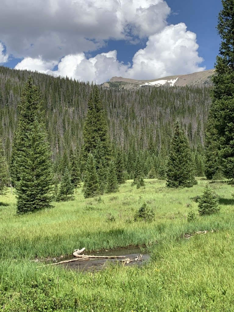 Reserving a time to enter Rocky Mountain National Park, we were not met with the usual lines that accompany this park in the summer. We had been to the park several times before, usually coming from the Estes Park side. The back side is less traveled in normal years, and COVID made the number of visitors even fewer now. We drove into the park and found a trailhead and parked; usually a difficult feat at 9:30 a.m. in the middle of summer. The Colorado River Trailhead hike was an easy, fun hike to a dilapidated cabin and settlement in a meadow near the Colorado River.