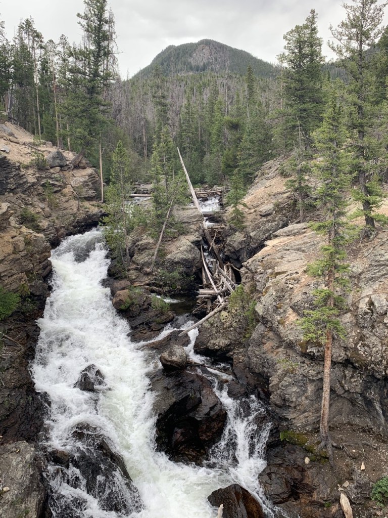 A waterfall hike on Rocky Mountain National Park property begins near the town, and we decided to take the easy hike to the falls. This was the busiest trail we were on the entire vacation, but there were still plenty of parking spaces later in the afternoon.