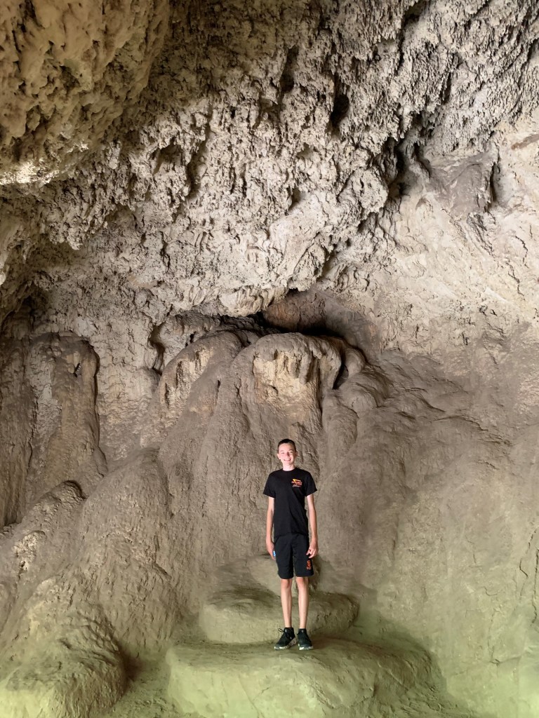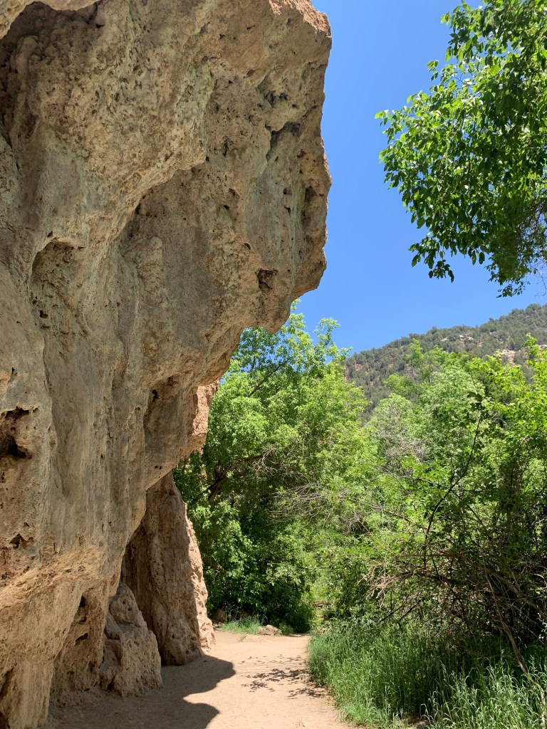 Rifle Falls is an odd landscape of tropical foliage that one rarely sees in Colorado. The spray from the constant falls has encouraged this strange landscape that is rooted in limestone. The limestone has created caves beneath the falls that you can enter on the hike to the top of the falls. We enjoyed this beautiful spot that, surprisingly, has a small lake on top of the mesa where the falls originate. The Falls once served as the water source for the town of Silt. Parking is limited at this park, but we were lucky to get a great spot close to the trailhead to the Falls. The place was busy on a week day in June, but I imagine that the offseason is much more relaxed and provides a peaceful camping experience. The state park has several electric campsites with water available, some Creekside, all with shade and fire pits.